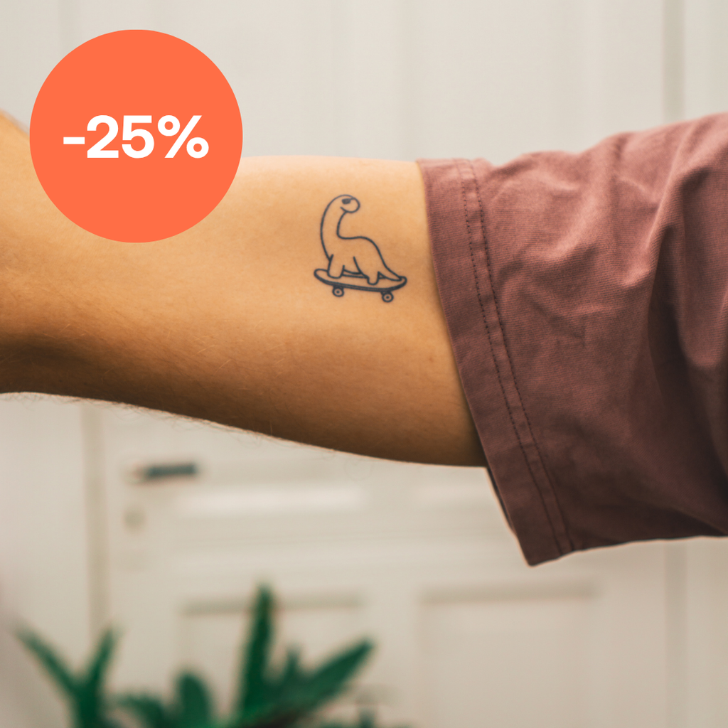 Il nostro inchiostro naturale Inkster viene assorbito dal primo strato della pelle e reagisce a contatto con i composti naturali presenti nella pelle e nell'aria, colorandosi di nero/blu.