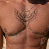 Il nostro inchiostro naturale Inkster viene assorbito dal primo strato della pelle e reagisce a contatto con i composti naturali presenti nella pelle e nell'aria, colorandosi di nero/blu.
