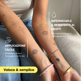 Il nostro inchiostro naturale Inkster viene assorbito dal primo strato della pelle e reagisce a contatto con i composti naturali presenti nella pelle e nell'aria, colorandosi di nero/blu.