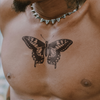 Il nostro inchiostro naturale Inkster viene assorbito dal primo strato della pelle e reagisce a contatto con i composti naturali presenti nella pelle e nell'aria, colorandosi di nero/blu.